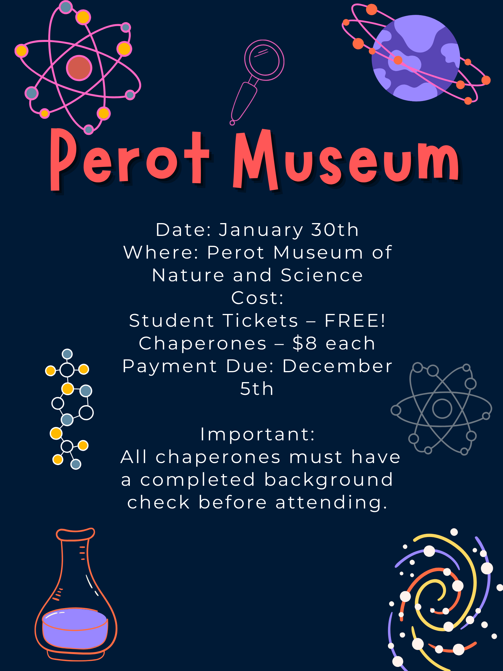 If you would like to attend the field trip with your student, you must fill out a District Volunteer Application if you haven't already done so this school year and submit it by January 16, 2026. https://apps.raptortech.com/Apply/MTkyOmVuLVVT